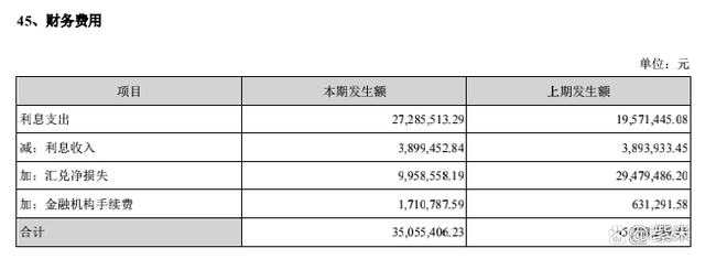 年报显示,公司财务费用为3505.54万元,去年同期为4578.83万元。其中,利息支出为2728.55万元,利息收入为389.95万元,汇兑损益995.86万元。