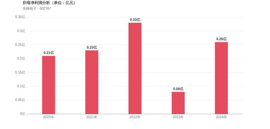 利润角度分析,2020年先锋电子实现归母净利润0.21亿元,2024年0.26亿元。利润水平在低位徘徊且波动较大。