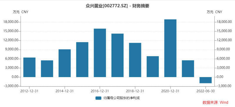 甚至今年上半年,众兴菌业的净利润出现了亏损。根据2022年半年报,公司营业收入为8.59亿元,同比增幅21.92%;而归母净利润为-2003.2万元,同比大幅下滑259.85%。