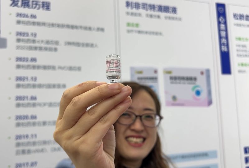 为打破国外垄断,康弘药业研发团队十年攻坚。实验室彻夜通明,研发人员的临床试验反复调整,仅临床试验就追踪数千例患者数据,十年投入研发资金超10亿元。2013年“朗沐”获批,成为我国首个获得世界卫生组织国际通用名的原创Ⅰ类生物新药,填补了国产眼底黄斑变性治疗药物的市场空白,价格在3000余元,注射频次减少,患者全年花费大幅减少。“上市11年,这款我国首个获世卫组织国际通用名的生物药,完成超250万次注射。”讲解员介绍,目前研发团队仍在精进,一年注射一次,甚至更长时间的新一代药物已进入研发阶段。