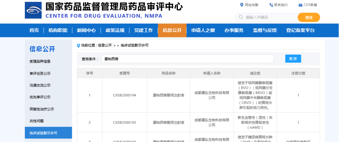 近日,成都康弘药业集团股份有限公司全资子公司成都康弘生物科技有限公司收到国家药品监督管理局签发的康柏西普眼用注射液《药物临床试验补充申请批准通知书》,同意开展临床试验。