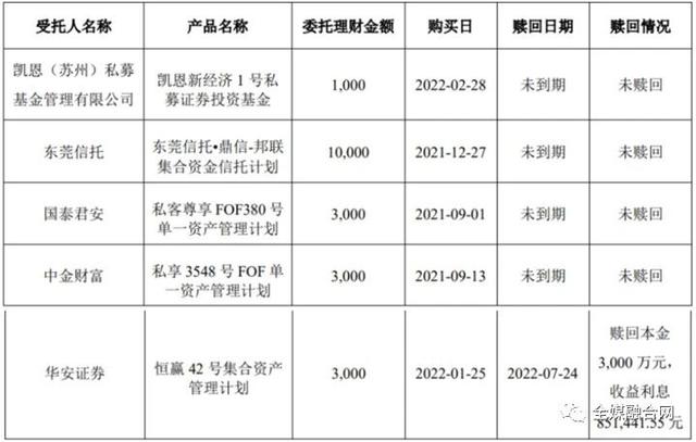 4月8日,快意电梯公告称,该公司于2022年4月6日召开第四届董事会第七次会议和第四届监事会第六次会议审议并通过了《关于使用闲置募集资金购买保本型理财产品的议案》,同意公司使用总额度不超过2.5亿元的闲置募集资金适时购买安全性高、流动性好的保本型理财产品,期限不超过一年。12月7日公告称,该公司继续使用额度不超过7亿元自有闲置资金购买银行、证券公司等金融机构的安全性较高、流动性较好、投资回报相对较高的理财产品。