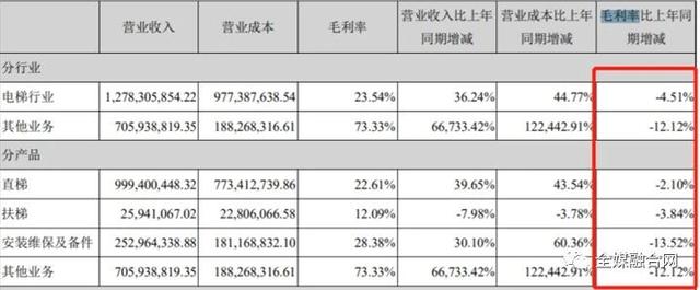 另外,快意电梯年报显示,该公司2021年实现营业总收入为19.84亿元,比上年同期增长111.24%;归母净利润为2.81亿元,比上年同期增长798.78%;扣非净利润2228.25万元,同比增长93.4%。虽然该公司营收增速同比增长111.24%,但是扣非净利润同比93.4%,低于营收增速,主要由于该公司电梯业务毛利率下降月4.51一个百分点。