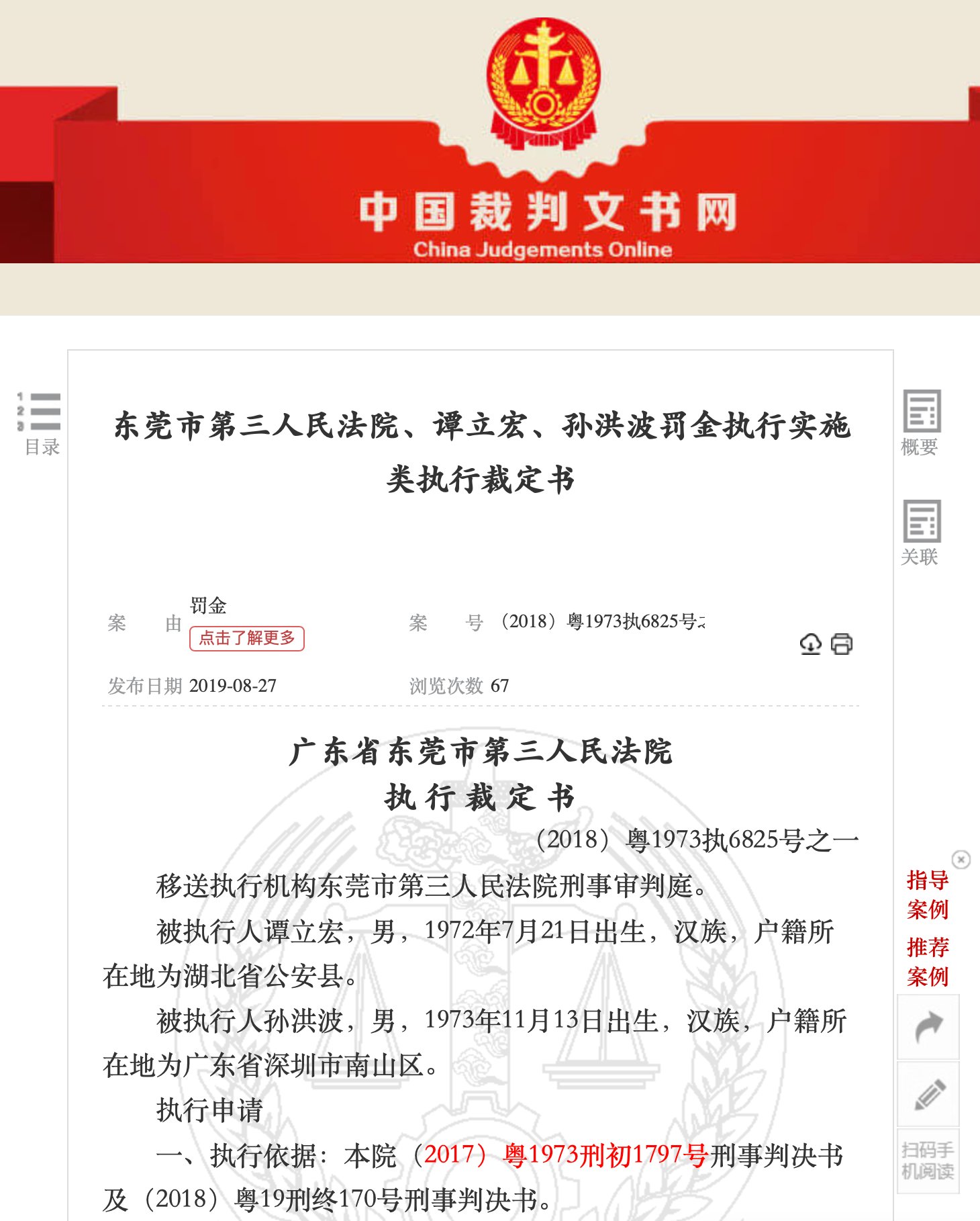 孙洪波在2017年3月21日提交了一份“个人自述”举报快意电梯公司偷逃税款特别巨大的犯罪行为。2017年6月29日东莞市国家税务局清溪税务分局回复称,根据所提供的材料,暂无法核实相关的情况。所以,对于立功的表现,法院不予采纳。最终,在谭立宏和孙洪波被羁押的当月,2017年3月,快意电梯正式登陆A股。