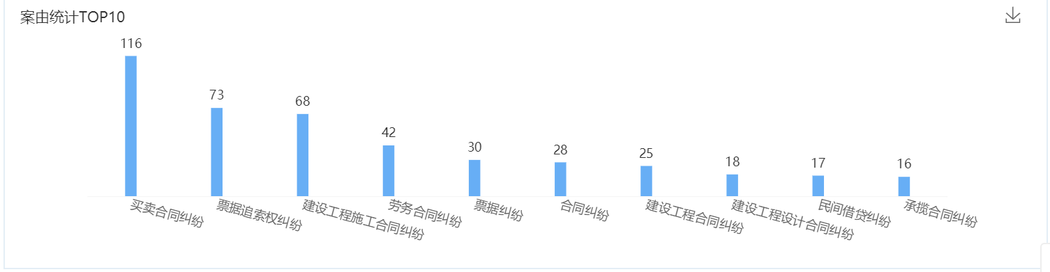 案由主要系买卖合同纠纷,以116次居首。紧随其后的是票据追索权纠纷、建设工程施工合同纠纷、劳务合同纠纷、票据纠纷等。