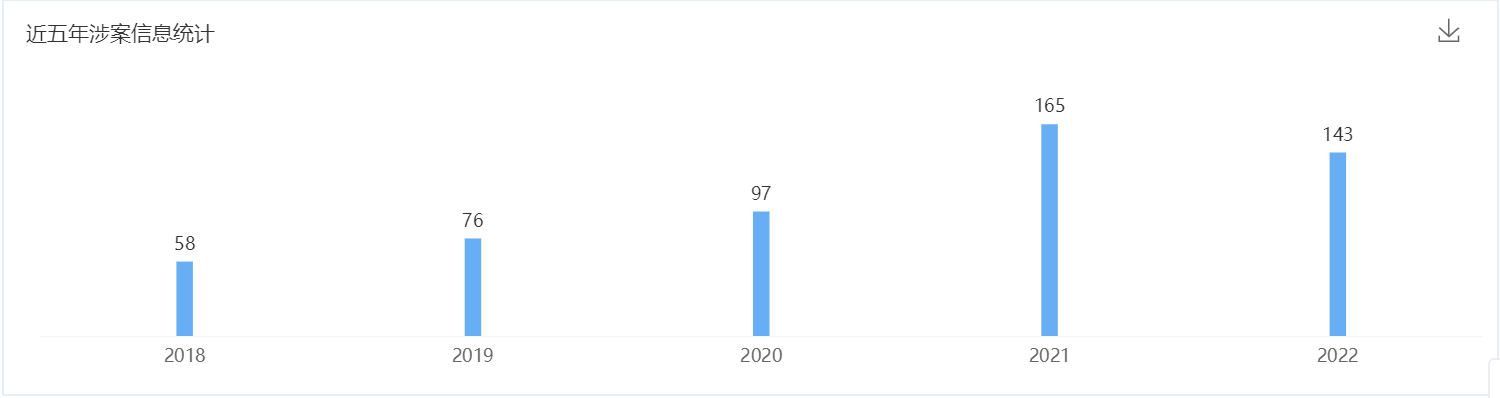 拉长时间线来看,2018年-2021年及2022年前5个月,文科园林涉司法案件分别为58起、76起、97起、165起、143起。