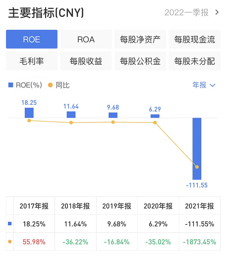 此外,文科园林2021年ROE也迎来大幅下滑,该数据为-111.55%,较去年同期下降1874.45%。