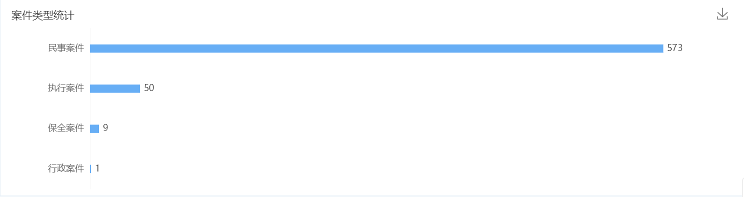 案件类型以民事案件居多,达573起。其次为执行案件,共50起;保全案件9起;行政案件1起。