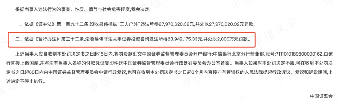 但被抓到的违法所得必然只有一个结果:“赔了夫人又折兵”,易伟被总计罚没5500万。