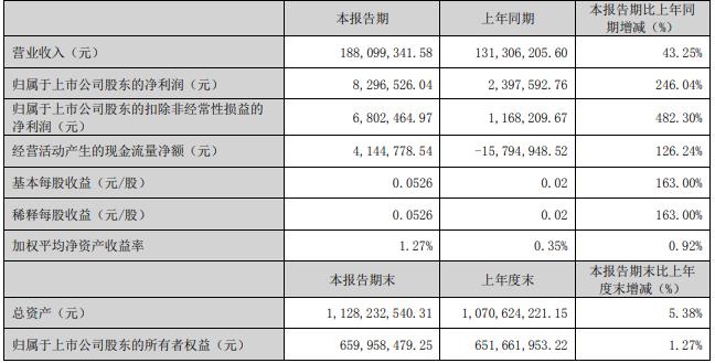 三夫户外2023年第一季度报告显示,2023年一季度,三夫户外实现营业收入1.88亿元,同比增长43.25%;归属于上市公司股东的净利润829.65万元,同比增长246.04%;归属于上市公司股东的扣除非经常性损益的净利润680.25万元,同比增长482.30%;经营活动产生的现金流量净额414.48万元,同比增长126.24%。