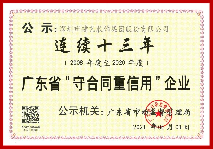 在建艺集团二十七载发展岁月中,建艺人始终把信用列为企业经营发展的基本准则,并数年如一日严格贯彻执行。