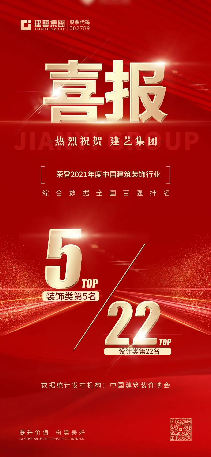 深圳市建艺装饰集团股份有限公司(下称建艺集团)凭借在行业领域的优异表现,连续荣登中国建筑装饰行业百强榜,位列中国建筑装饰行业综合排名装饰类第5名和设计类第22名!