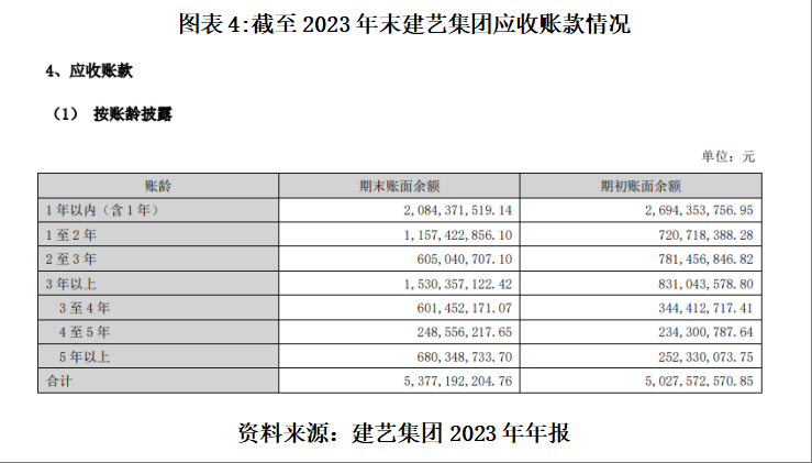 根据今年3月27日的公告,建艺集团与中国恒大部分诉讼已判决,中国恒大需支付1298.36万元的逾期付款。但截至2024年9月末,建艺集团的应收账款、应收票据、其他应收款合计高达40.08亿元,其中5年以上应收账款达6.8亿元,占总应收账款的比例为12.65%,其余应收账款仍较大,收回或存在一定的难度。