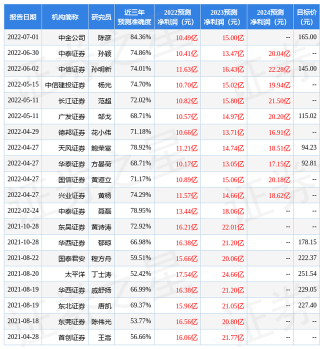 以下是详细的盈利预测信息: