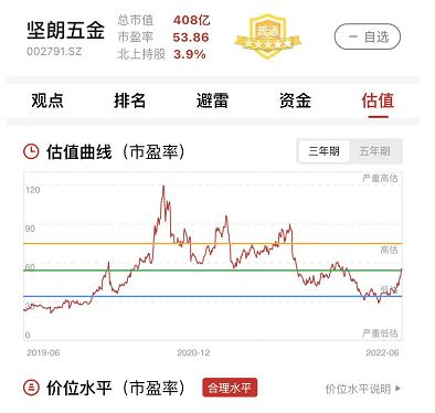 图:坚朗五金估值曲线,来源:市值罗盘APP