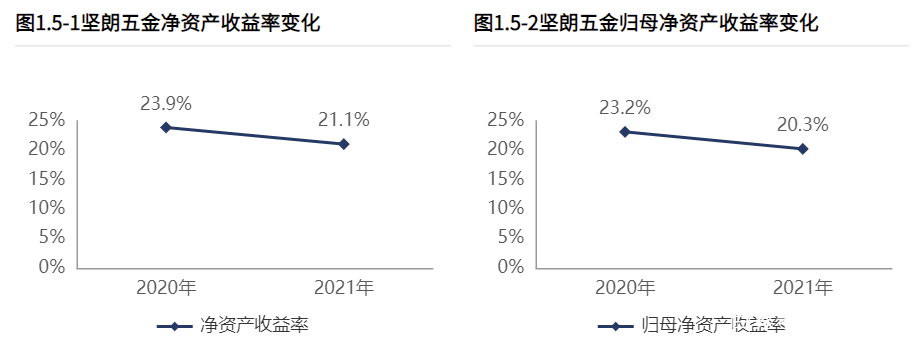 2021年坚朗五金净资产收益率21.07%,股东回报水平较高,相较于2020年股东回报水平降低;归母净资产收益率20.25%,对母公司股东回报水平较高,相较于2020年对母公司股东回报水平降低。
