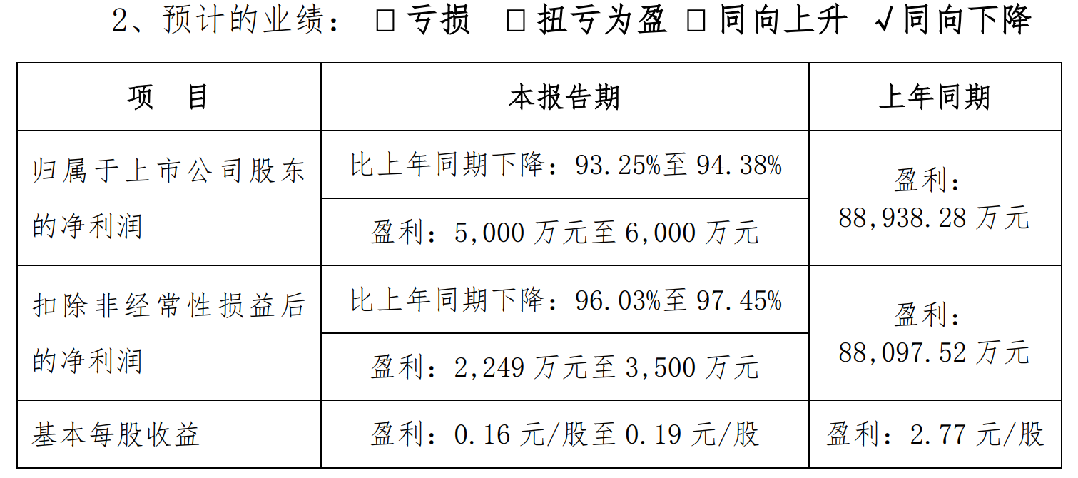 公告显示,2022年1月1日至2022年12月31日,坚朗五金预计归属于上市公司股东的净利润为盈利5000万元至6000万元,比上年同期下降93.25%至94.38%。上年同期为88,938.28万元。