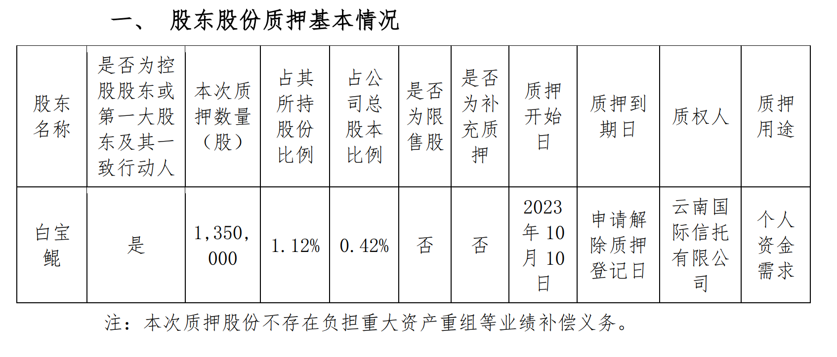 公告显示,坚朗五金近日收到公司控股股东、实际控制人白宝鲲的通知,获悉其所持公司的135万股股份办理了质押业务,占坚朗五金总股本比例为0.42%。