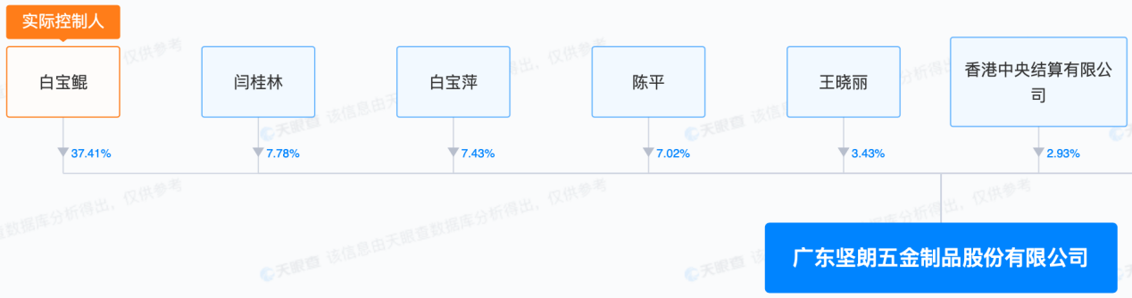 从目前坚朗五金的股权穿透显示,该公司前5大股东均为自然人,其中白宝鲲是坚朗五金的第一大股东,直接持股37.41%。