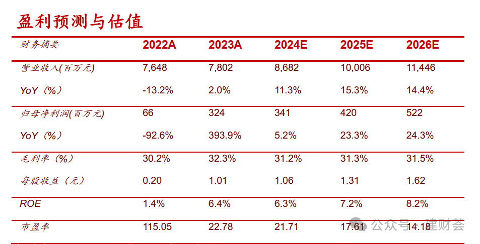 基于地产政策落地有滞后性,我们下调盈利预测,预计2024-2025年营业收入预测86.82/100.06亿元(原97.30/114.75亿元),预计归母净利润3.41/4.20亿元(原5.60/6.73亿元),对应EPS为1.06/1.31元(原1.74/2.09元);新增2026年营业收入/归母净利润/EPS预测,分别为114.46亿元/5.22亿元/1.62元;对应7月10日股价23.01元21.71/17.61/14.18xPE。维持“买入”评级。