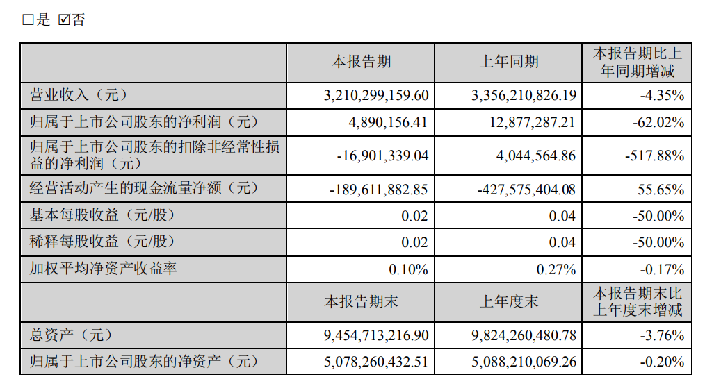 2024上半年,坚朗五金营业收入32.1亿元,同比降4.35%;归属于上市公司股东的净利润489.02万元,同比降62.02%。