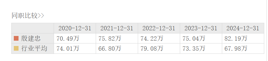 从薪酬来看,坚朗五金董事、副总裁、董事会秘书殷建忠2024年从公司获得的税前报酬总额82.19万元,高于董事长白宝鲲,居董监高薪酬之首。