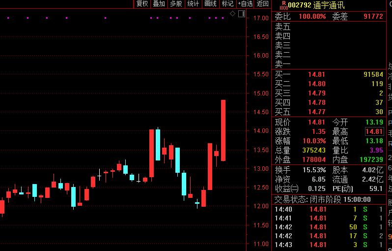 据查,通宇通讯主营通信天线及射频器件、光通信等,最近三个交易日(8月31日至9月2日)中,有两个交易日(8月31日、9月2日)股价涨停,在此之前,今年年初至8月30日,通宇通讯股价整体下跌22%。