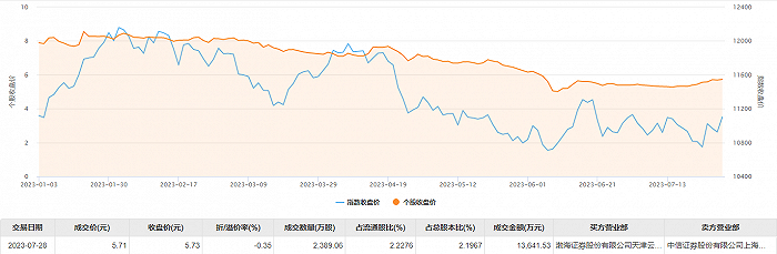 罗欣药业7月28日大宗交易成交2389.06万股,成交额1.36亿元,占当日总成交额的84.02%,成交价5.71元,较市场收盘价5.73元折价0.35%。