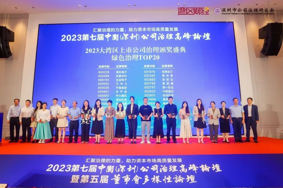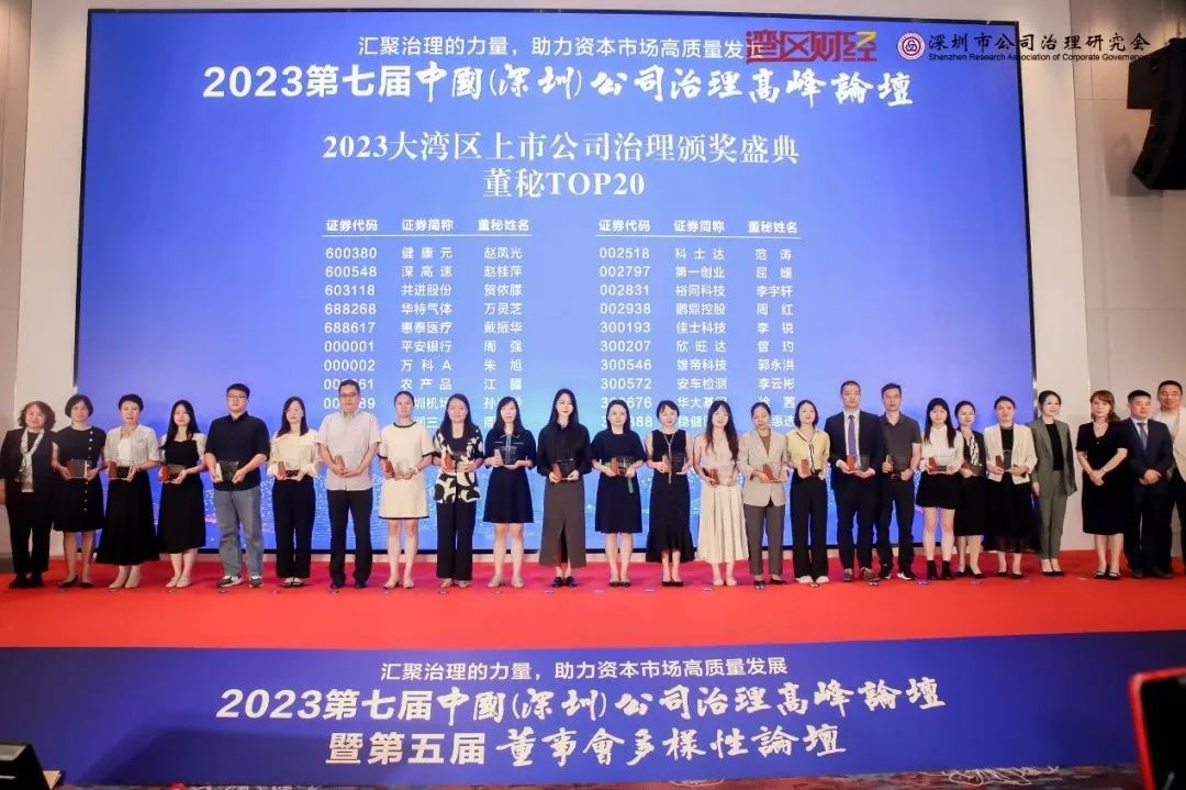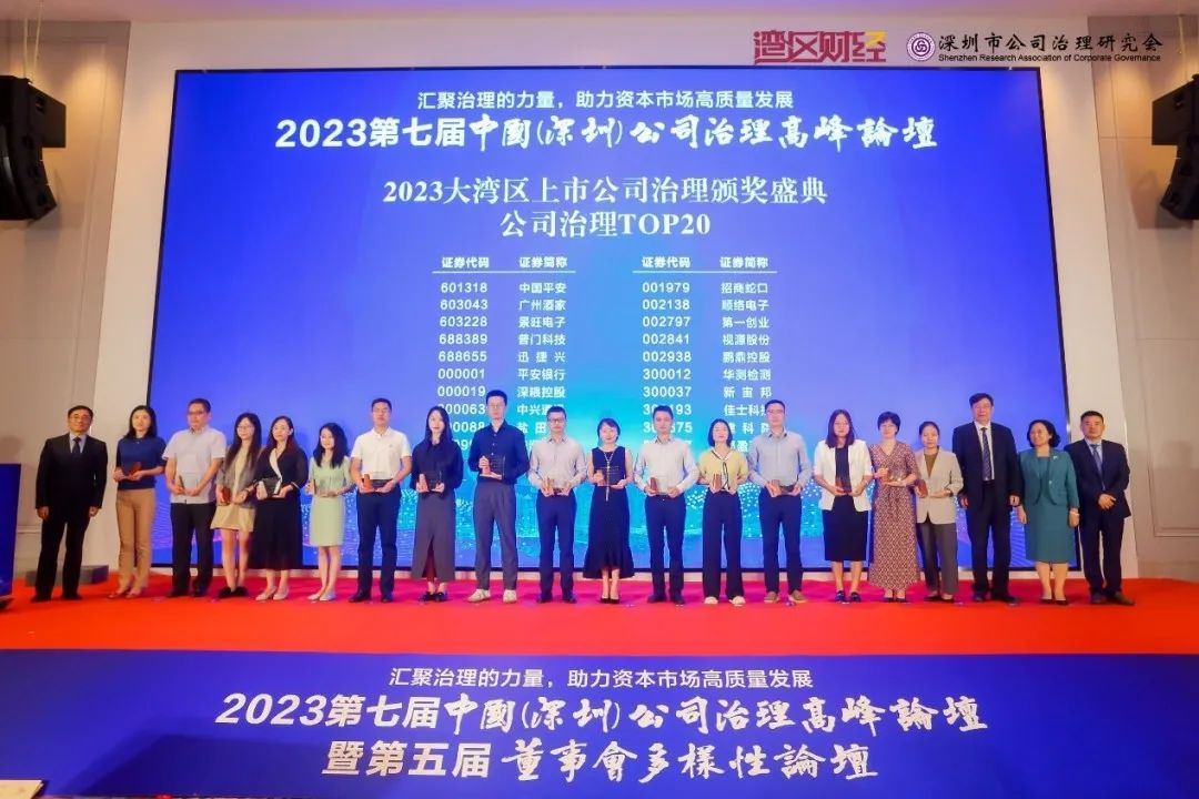 “2023大湾区上市公司董秘TOP20”“2023大湾区上市公司绿色治理TOP20”“2023大湾区上市公司公司治理TOP20”“2023大湾区上市公司年度贡献奖”等奖项作为公司治理最佳实践表彰,按照中国公司治理研究院的模型和算法,专家团队从股东治理、董事会治理、监事会治理、经理层治理、信息披露和利益相关方管理等公司治理的六大维度抓取大湾区755家上市公司2022年度公开披露的信息,经过严格评估、筛选、打分排名形成入围名单,并经过专家组的审核把关,报送相关监管机构、行业协会审核后最终形成获奖名单。
