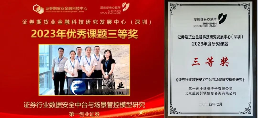 7月25日,证券期货业金融科技研究发展中心(深圳)(以下简称“金融科技中心”)公布了2023年金融科技创新研究课题评审结果,第一创业证券申报的《证券行业数据安全中台与场景管控模型研究》课题荣获三等奖。
