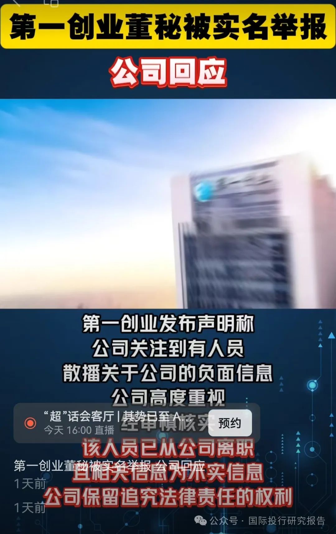 第一创业董秘被实名举报杜撰董事会发言:董秘回复此人已离职且信息不实!第一创业无实际控制人,董事长吴礼顺也是北京国资运营公司董事长