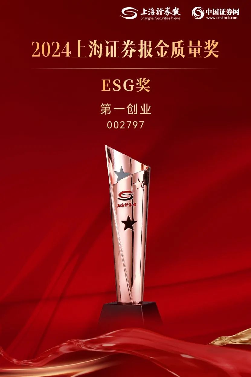 上海证券报“金质量”奖是国内上市公司领域内权威且有影响力的奖项之一,其中,ESG奖聚焦并表彰“心系绿色发展,在追求经济效益的同时,不忘环境保护、社会责任与公司治理”的上市公司。