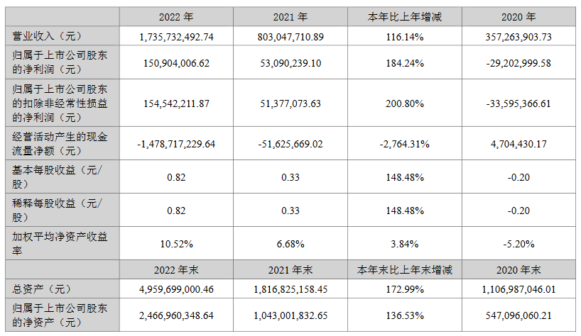 得益于新能源行业的快速发展,丰元股份锂电正极材料产销两旺,2022年实现营业收入17.36亿元,同比增长116.14%;归属于上市公司股东的净利润1.51亿元,同比增长184.24%。
