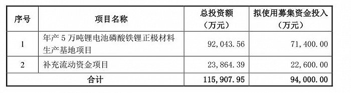 丰元股份2022年完成9.40亿元定增募资,主要投向的就是“年产5万吨锂电池磷酸铁锂正极材料生产基地项目”。来源:公告