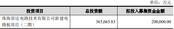 珠海崇达电路技术有限公司新建电路板项目采用分期建设方式,本次募投项目“珠海崇达电路技术有限公司新建电路板项目(二期)”为该项目的第二期建设。本项目拟新建印制电路板生产厂房及配套设施,以达到新增公司印制电路板产能的目的。项目建设期为24个月,拟由公司全资子公司珠海崇达实施,达产后将新增年产108万平方米高多层板和42万平方米HDI板的产能。