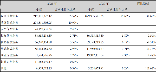 从收入结构来看,仪器销售业务为公司营业收入的主要来源,报告期内实现营业收入12.12亿元,同比增长34.68%,占公司营业收入的65.57%。