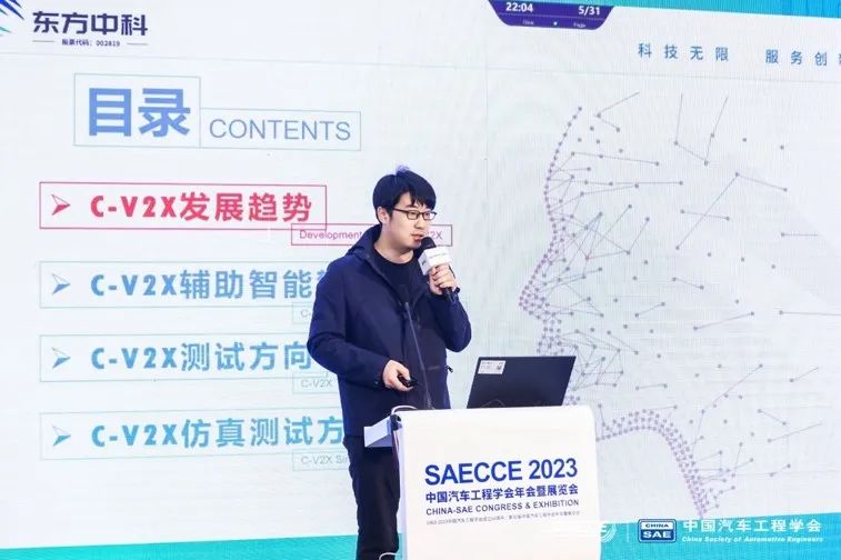 大会上,东方中科带来了技术演讲:C-V2X应用场景HIL仿真测试解决方案。