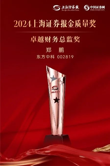 近日,东方中科财务总监郑鹏先生,在上海证券报社主办的上市公司高质量发展大会活动中荣获“2024上海证券报金质量奖-卓越财务总监奖”。