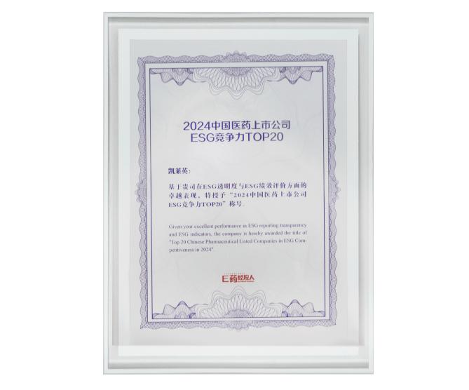 在E药经理人联合中国领先的企业社会责任领域独立咨询机构商道咨询评选发布中国医药领域ESG管理实践权威榜单中,凯莱英已连续多年荣获“中国医药上市公司ESG TOP 20”荣誉。