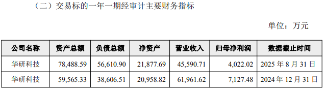 2024年度、2025年前8个月,华研科技营业收入分别为61,961.62万元、45,590.71万元,归母净利润分别为7,127.48万元、4,022.02万元。
