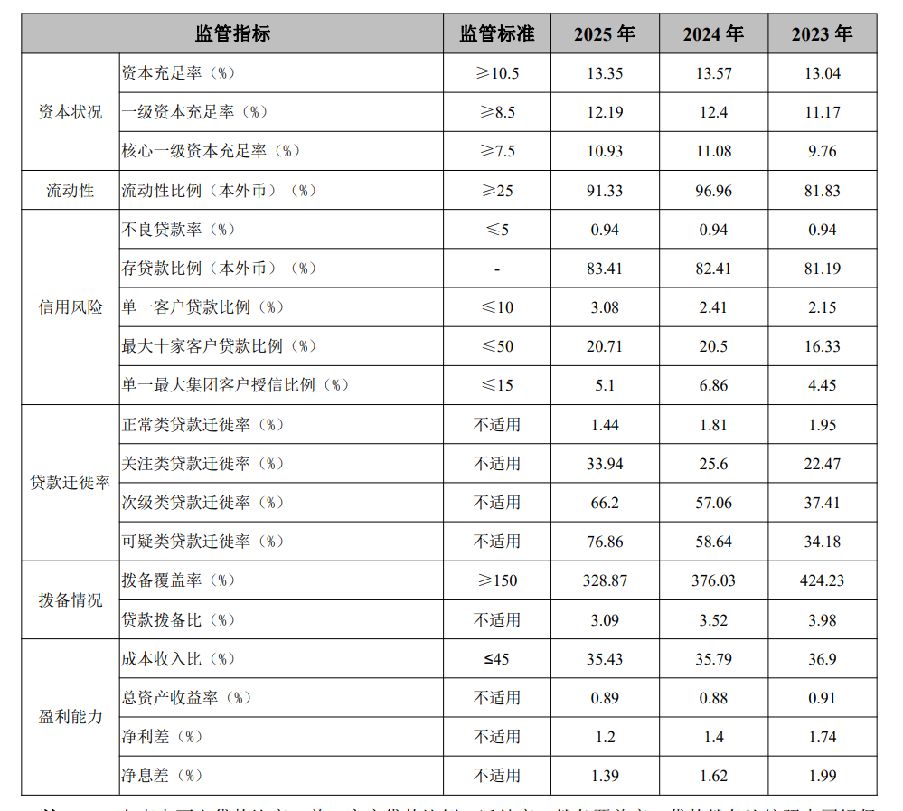 在盈利表现偏弱的同时,张家港行资产质量看似平稳,风险防控压力逐步凸显。年报数据显示,截至2025年末,该行不良贷款率维持0.94%,与上年持平,但这一数据背后,不良贷款向上迁徙风险显著加剧。关注类贷款迁徙率从22.47%升至25.6%,次级类、可疑类贷款迁徙率分别提升19.65、24.46个百分点。