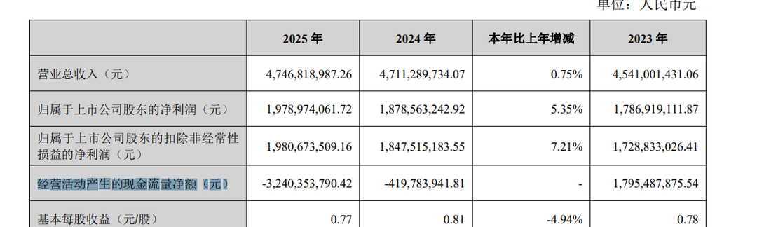 此外,现金流与盈利效率指标同样释放压力信号,2025年该行经营活动现金流净额为-32.40亿元,同比大幅减少671.91%,现金回笼能力持续走弱。