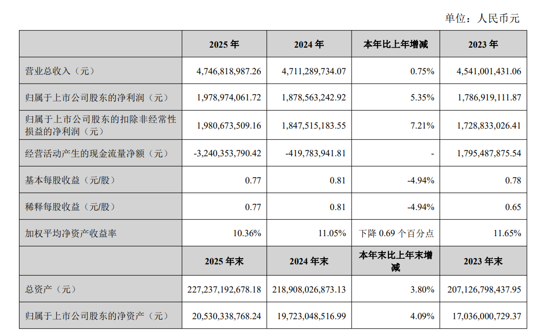 张家港行2025年年度报告显示,截至报告期末,该行总资产达2272.37亿元,同比增长3.80%,规模保持平稳扩张,但规模增长并未有效转化为经营业绩的同步提升,核心盈利指标显现疲态,增长乏力成为该行年度经营的核心特征。
