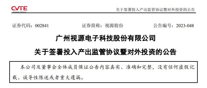 11月14日晚间,视源股份发布公告称,公司召开第四届董事会第二十八次会议,审议通过了《关于签署投入产出监管协议暨对外投资的议案》,会议同意公司以自有或自筹资金投资人民币42亿元建设“视源股份全球总部基地项目”。