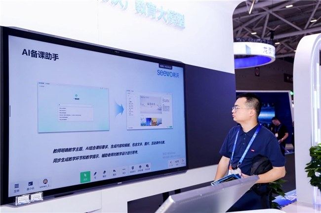 在展会现场,希沃工作人员展示了搭载教学大模型的课堂智能反馈系统如何生成课堂报告。通过AI分析,该系统能够自动捕捉师生对话、课堂互动以及新课标落实情况,并生成详尽的报告,为教师们提供宝贵的教学建议。