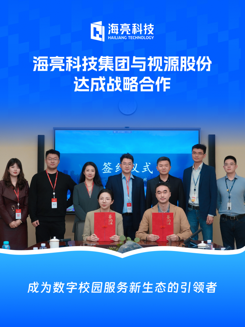 3月11日,海亮科技集团与视源股份在广州签订战略合作协议。双方将推动信息技术与教育教学深度融合,通过硬件设备与数字资源的协同创新,共同构建智慧校园新型解决方案,助力教育公平与质量提升。