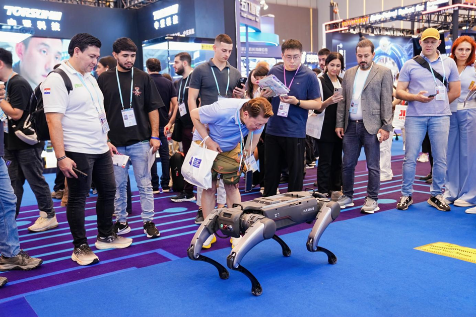 MAXHUB X7四足机器人吸引参观者驻足研究(图片来源:视源股份)