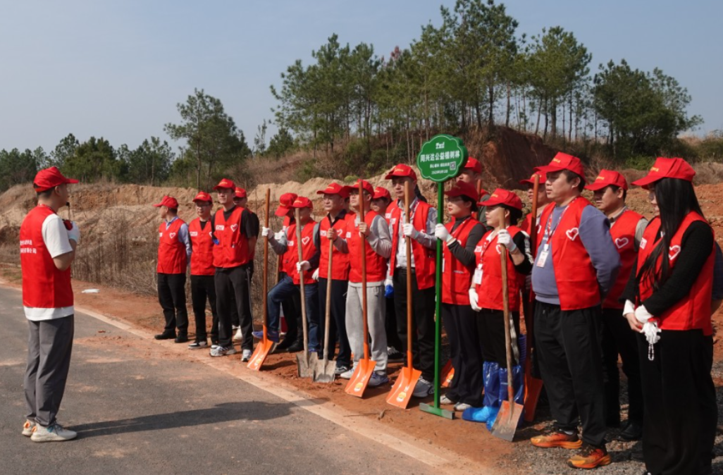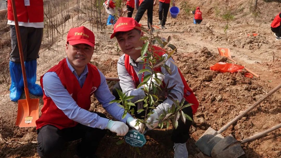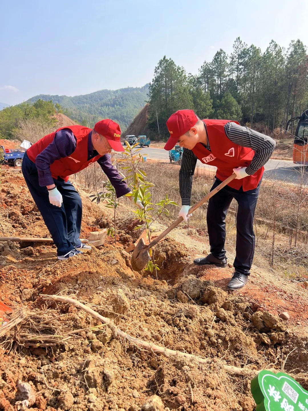 现场一派热火朝天,在春日的阳光下,汗水滴落,笑容绽放,每棵树苗都承载着大家对绿色未来的期待。
