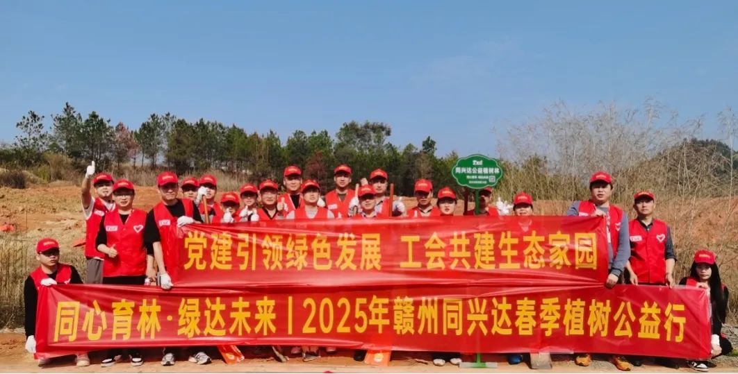 2025年3月12日,植树节如期而至。赣州同兴达综合管理部联合党支部、工会及高管们共赴春季植树公益活动。当天上午,晴空万里,大家满怀热忱,向着南康区凤岗镇长胜村出发。每个人都期待在这片土地上播撒绿色希望,为生态建设贡献一份力量。