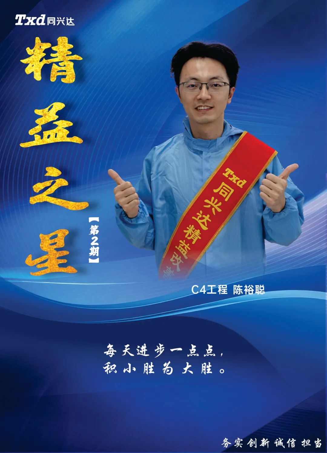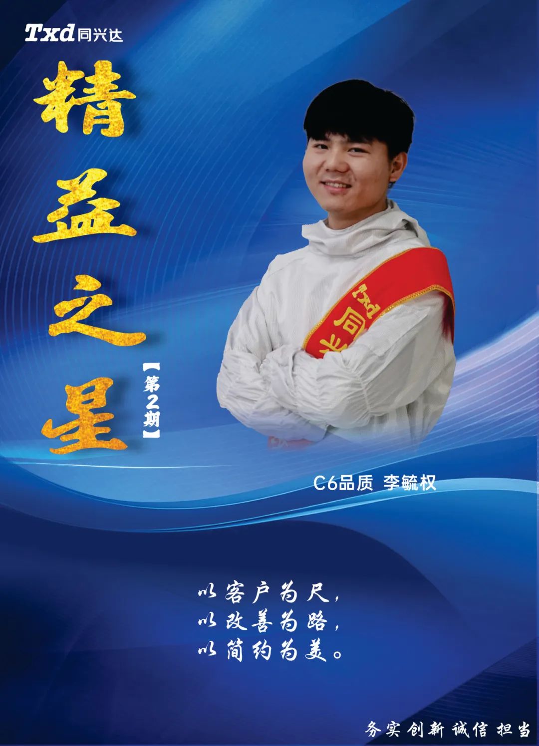 精益,是同兴达发展的关键。它削减成本、提升效率,助力产品品质飞跃,使同兴达在市场竞争中脱颖而出。每一位精益之星都是精益理念的践行者,用智慧与汗水诠释着精益的力量。但精益不仅止步于个人,更需全员参与。让我们以精益之星为标杆,将精益思维融入日常工作,携手奋进,让精益在同兴达的每一个角落落地生根,共同铸就同兴达更加灿烂的明天!